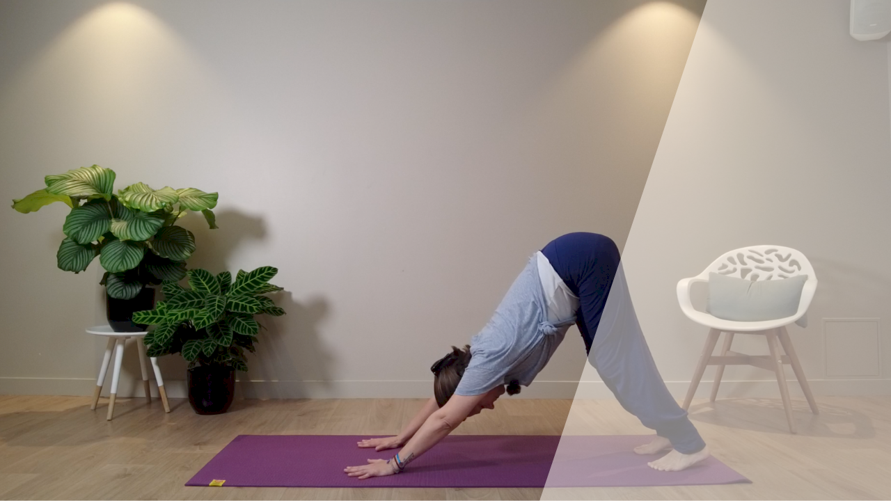 Exercices de travail d'inversion et d'équilibre avec la posture du chien tête en bas